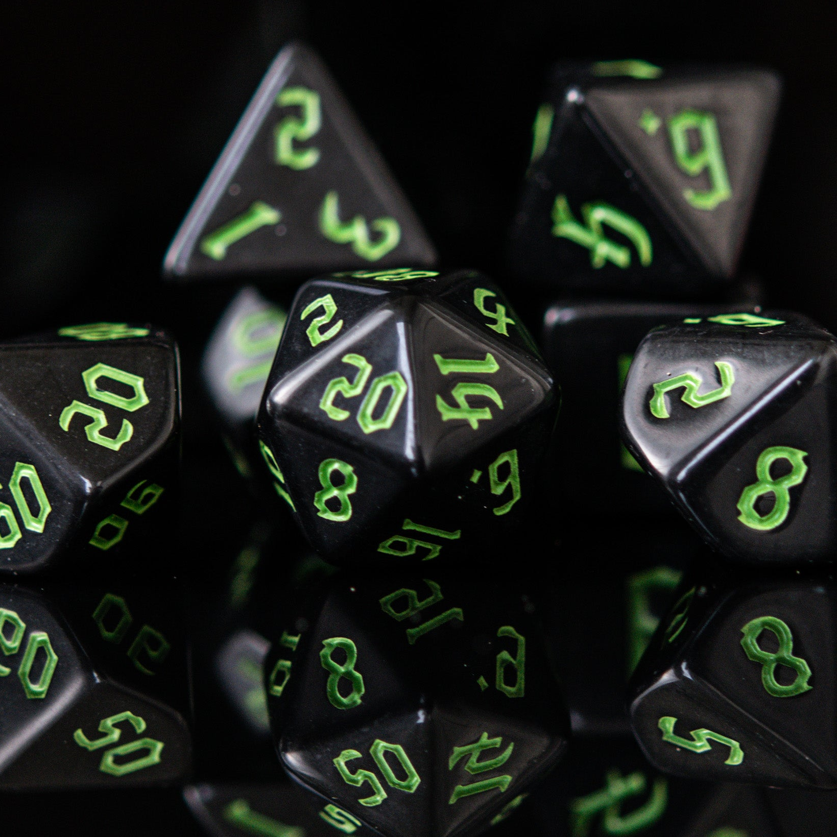 Dark Cathedral Green Acrylic Dice Set