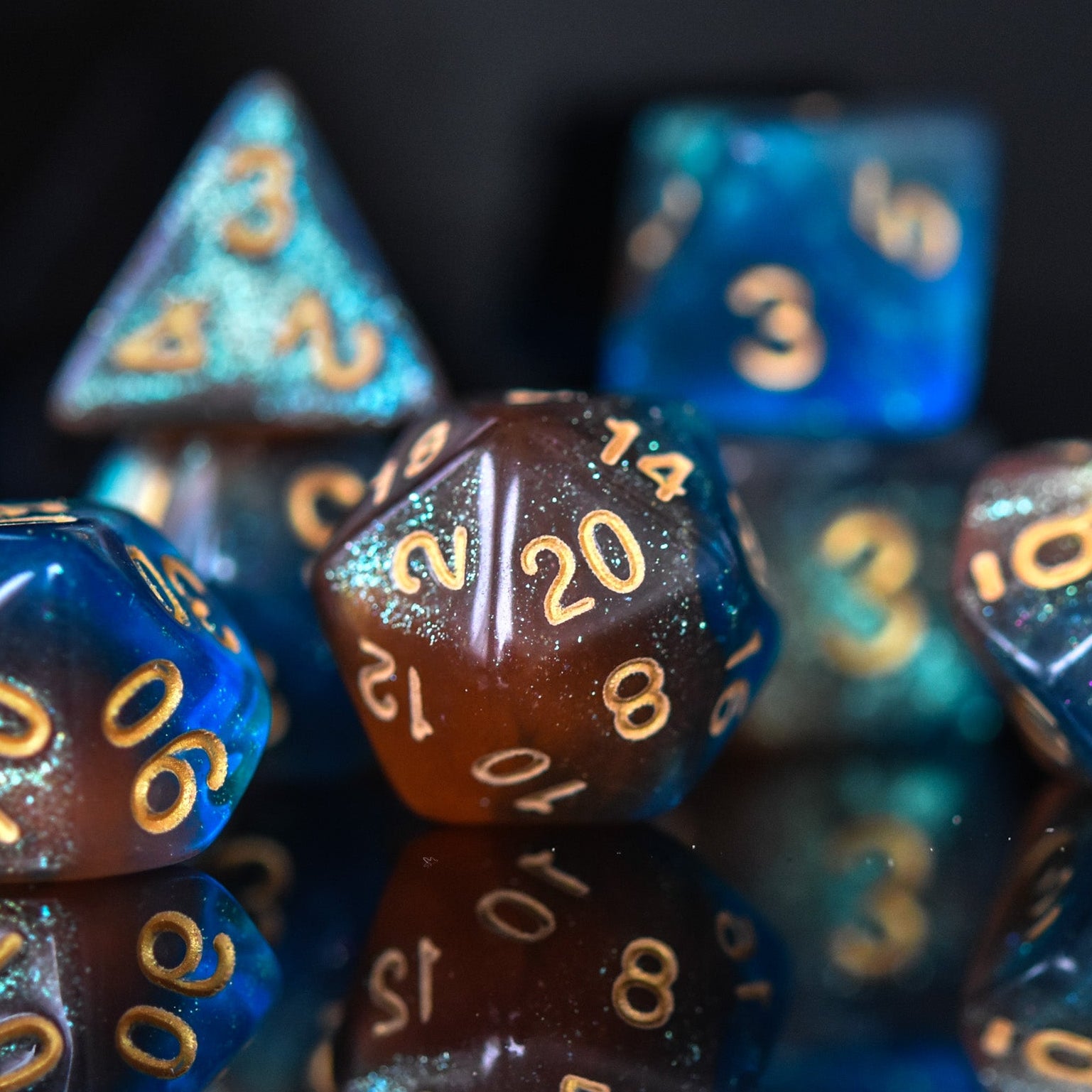 Our acrylic dice are carefully poured into individual molds and cured inside a vacuum chamber to insure no air bubbles are trapped inside the dice. After curing, each individual die is removed from the mold and numbers are painted by hand. These dice are perfect for any RPG and will sure to impress at your upcoming session!