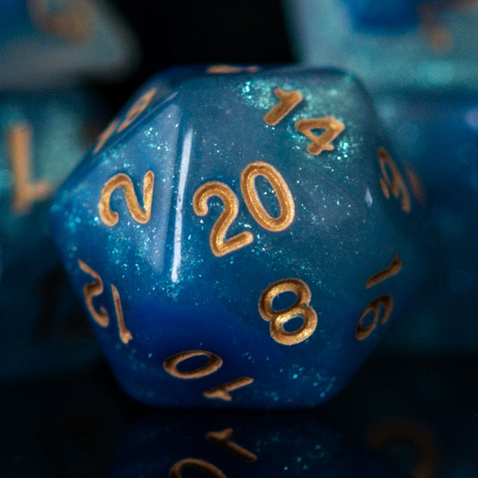 Our acrylic dice are carefully poured into individual molds and cured inside a vacuum chamber to insure no air bubbles are trapped inside the dice. After curing, each individual die is removed from the mold and numbers are painted by hand. These dice are perfect for any RPG and will sure to impress at your upcoming session!