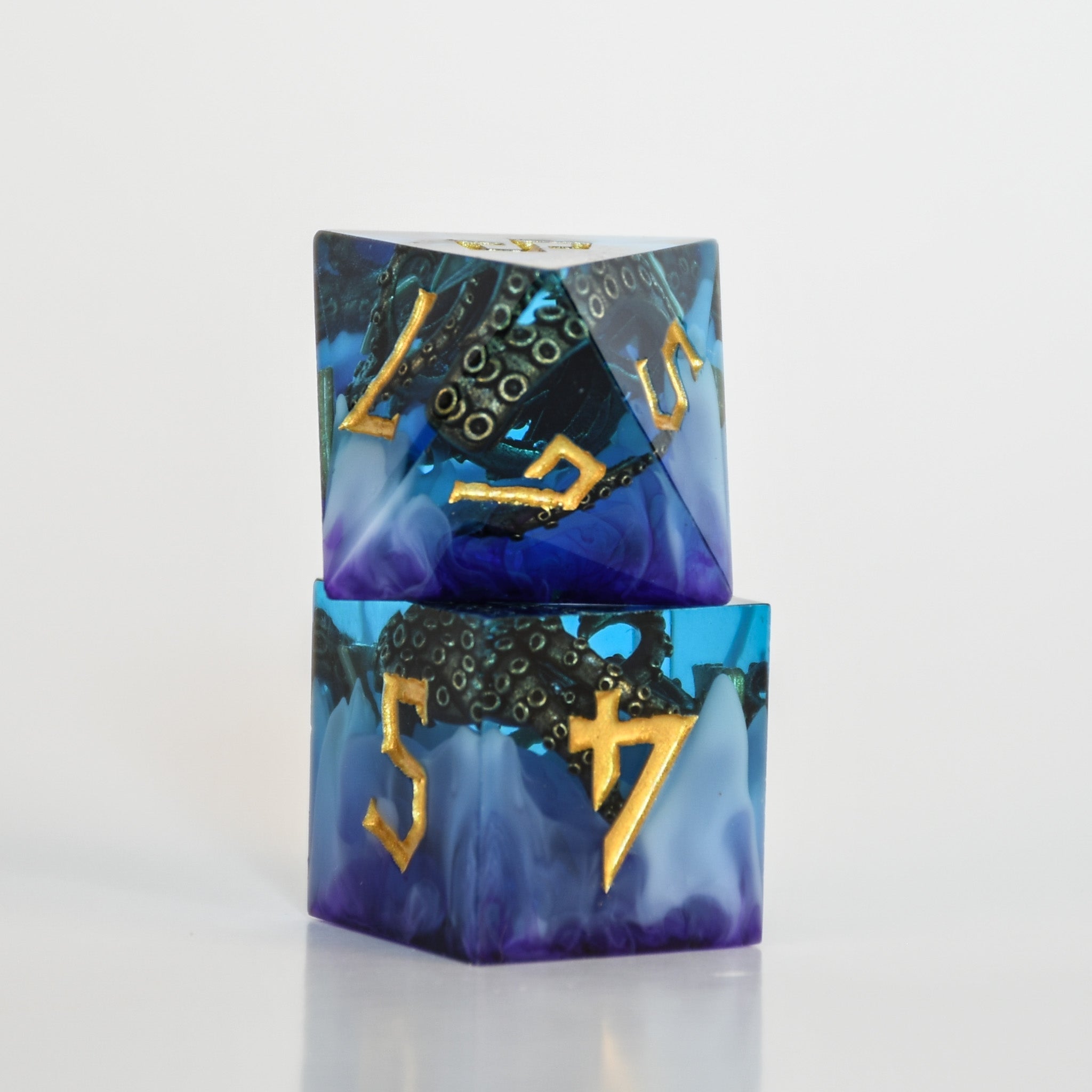 Hand-crafted from beginning to end, our sharp-edged resin dice feature gorgeously hand-painted numbers. These dice are ideal for any tabletop RPG game and are sure to impress at your upcoming session!