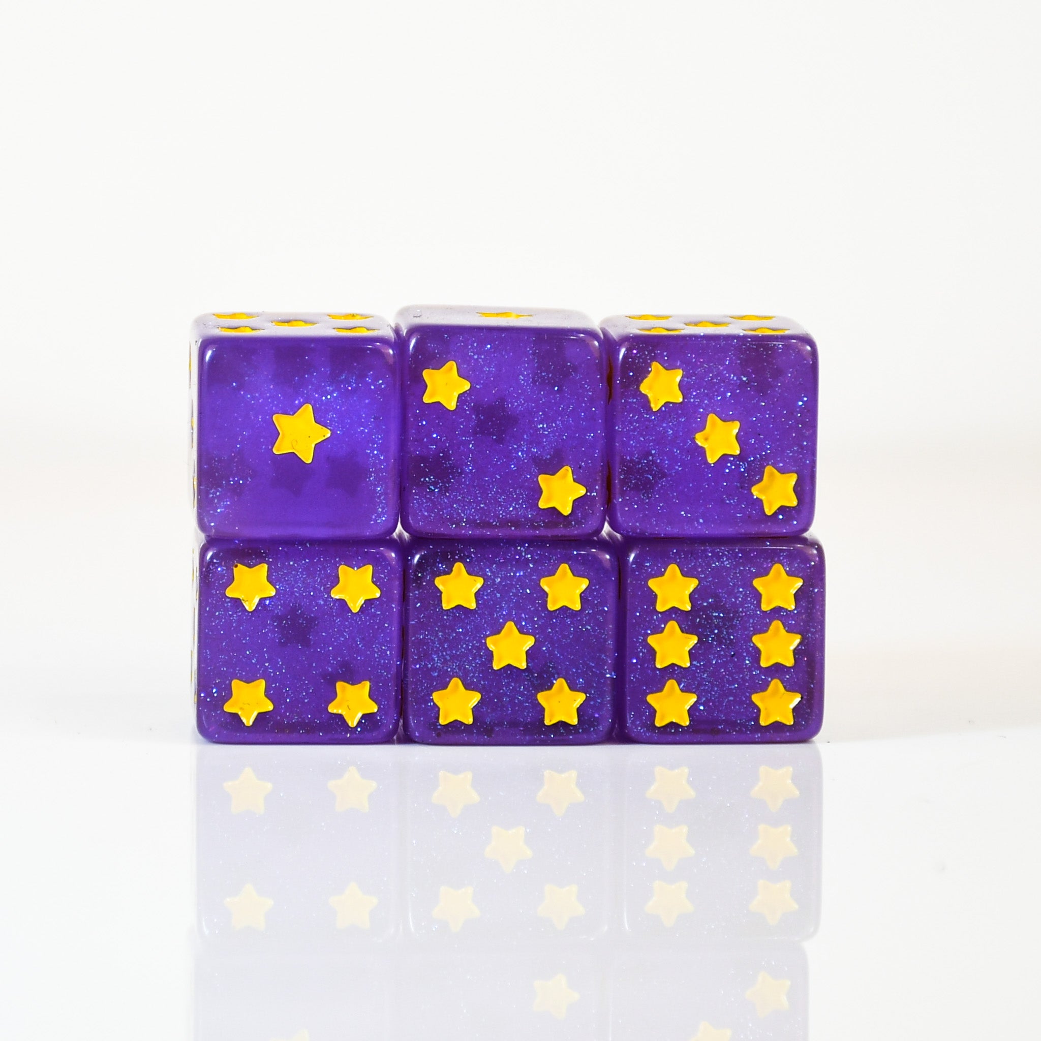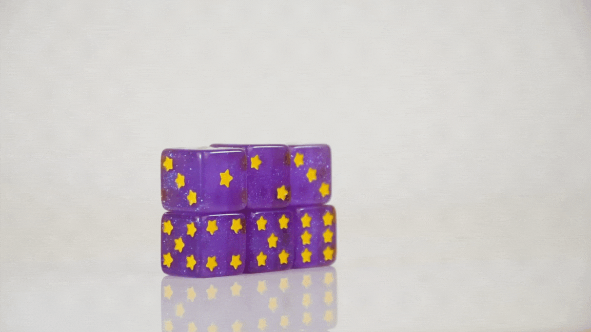 Add a sprinkle of Spiral charm to your rolls with our Official Wizard101 x Misty Mountain Gaming Resin D6 Dice Set! These vibrant purple resin dice shimmer with cosmic sparkle and feature yellow star pips, inspired by Wizard101’s whimsical world design.