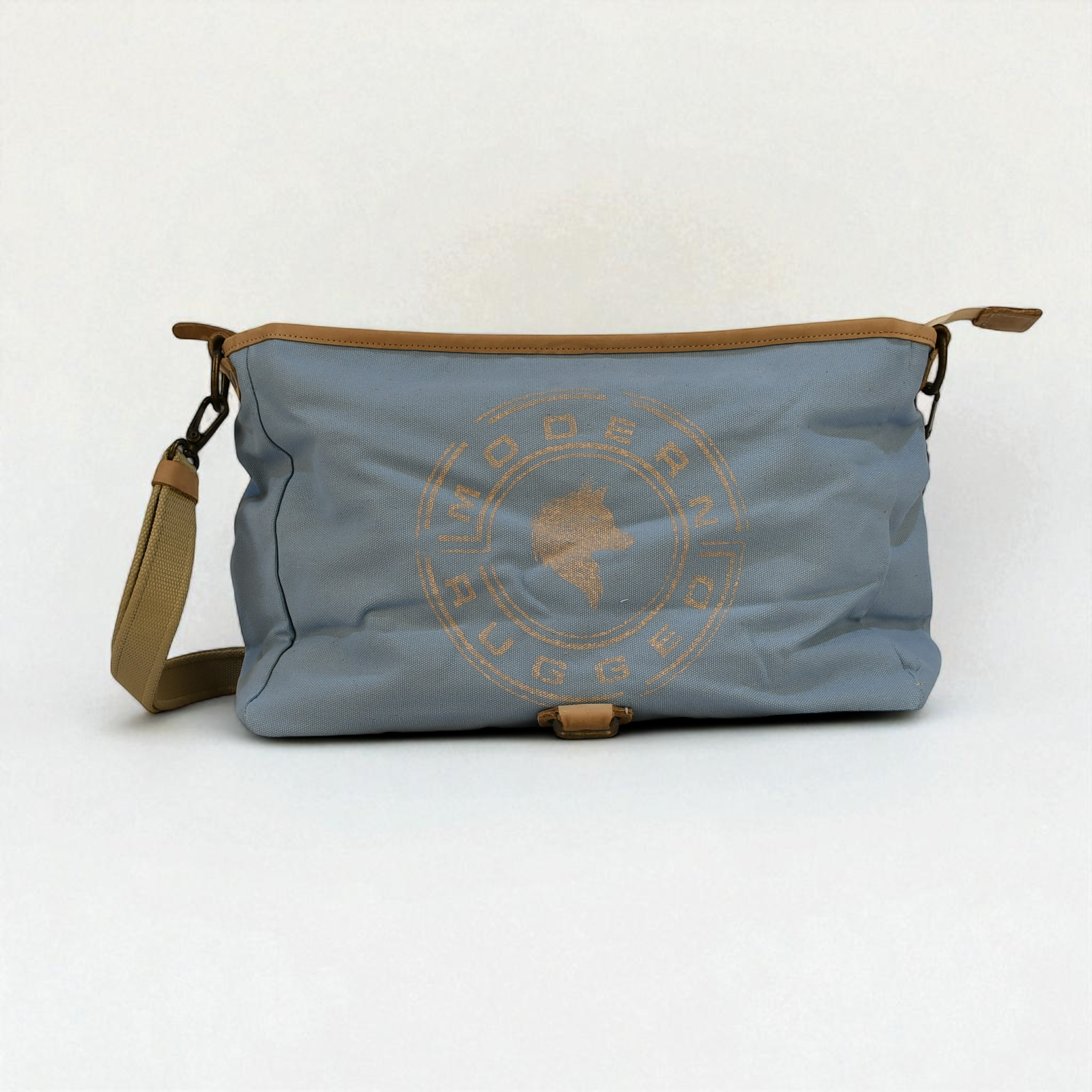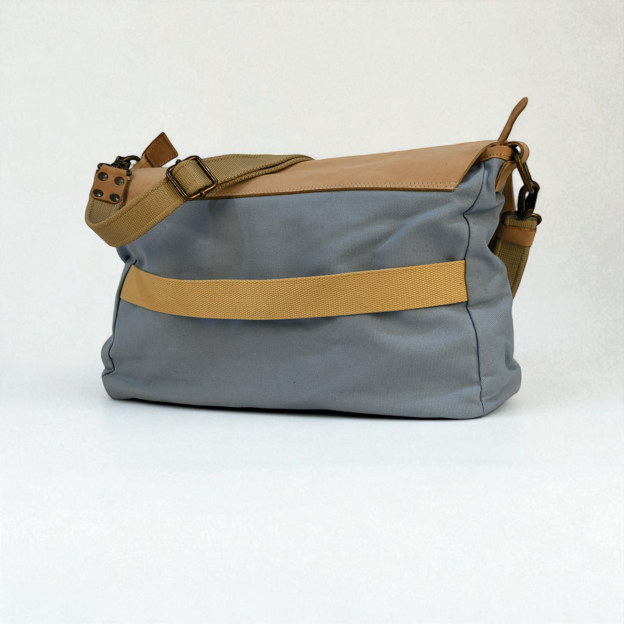 A clean, vintage-inspired laptop carrier built for work, travel, and everyday use. The Modern Rugged Canvas Laptop Bag in Powder Blue pairs thick, heavy-duty canvas with cool tan bovine leather for a refined yet rugged aesthetic. Lightweight, durable, and effortlessly stylish - this bag is ready for the road, the office, or wherever your day takes you.