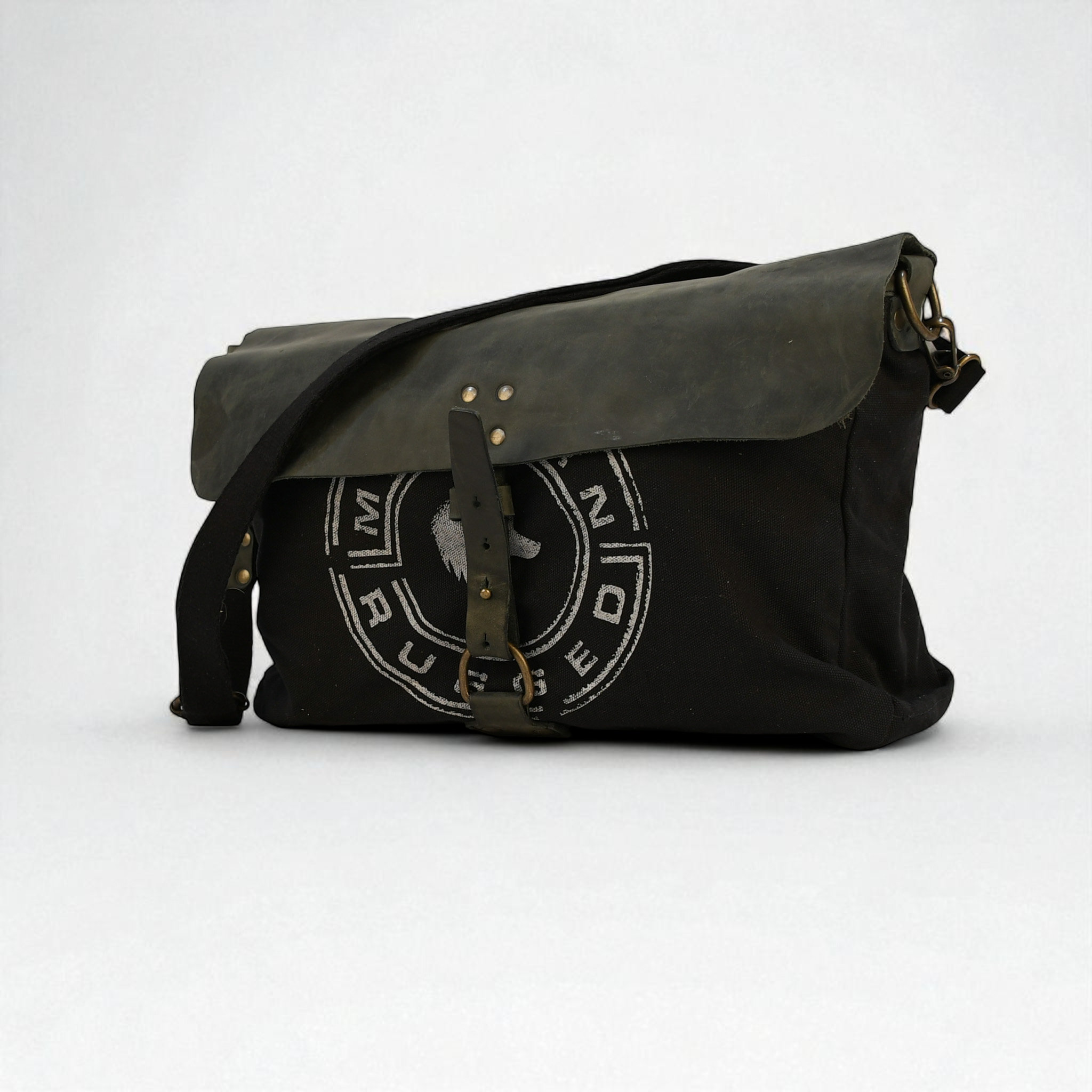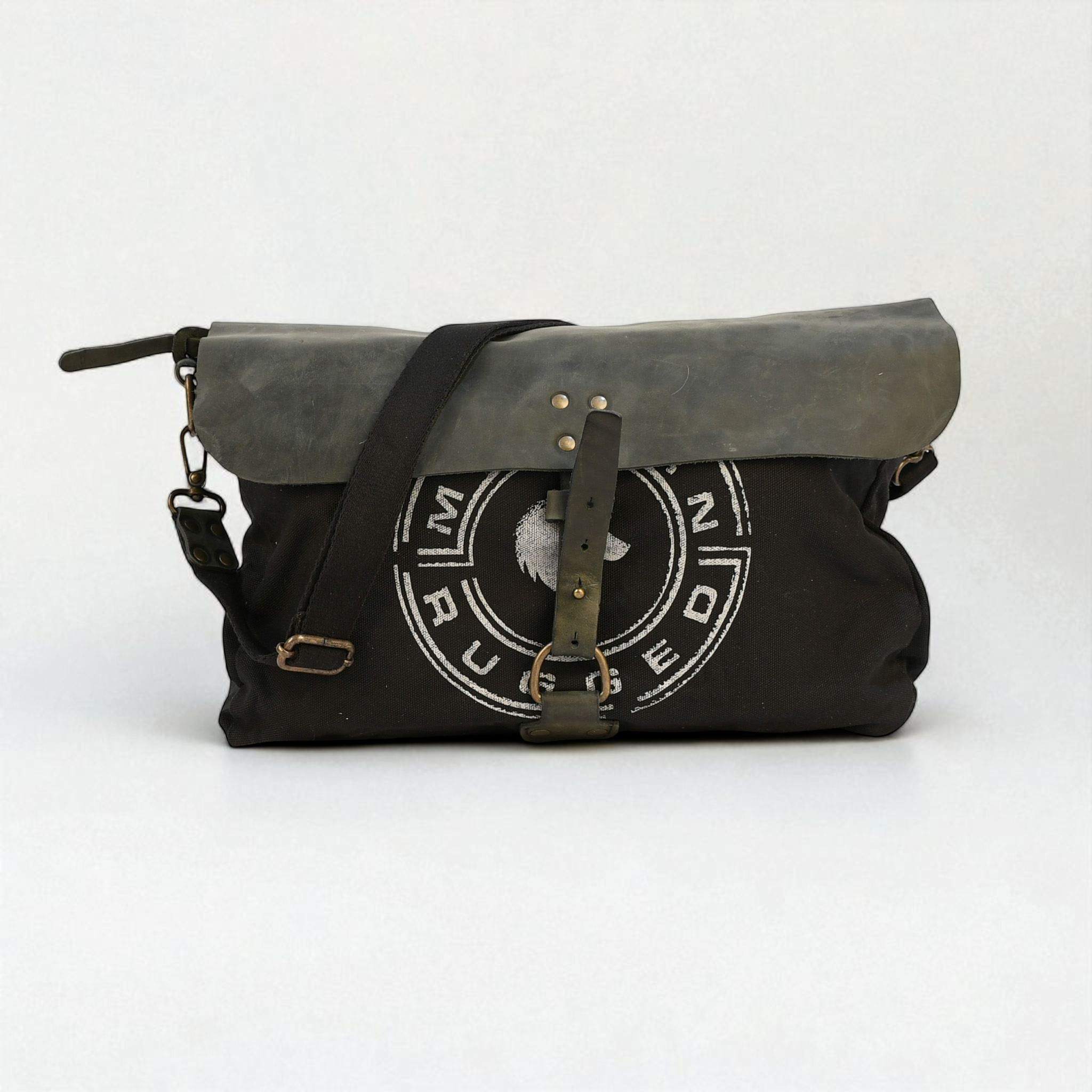 A rugged, understated laptop carrier built for work, travel, and everyday carry. Crafted from thick, heavy-duty black canvas and accented with charcoal bovine leather, this laptop bag delivers durability, function, and Modern Rugged’s signature minimalist style. Perfect for the office, the field, or the road.