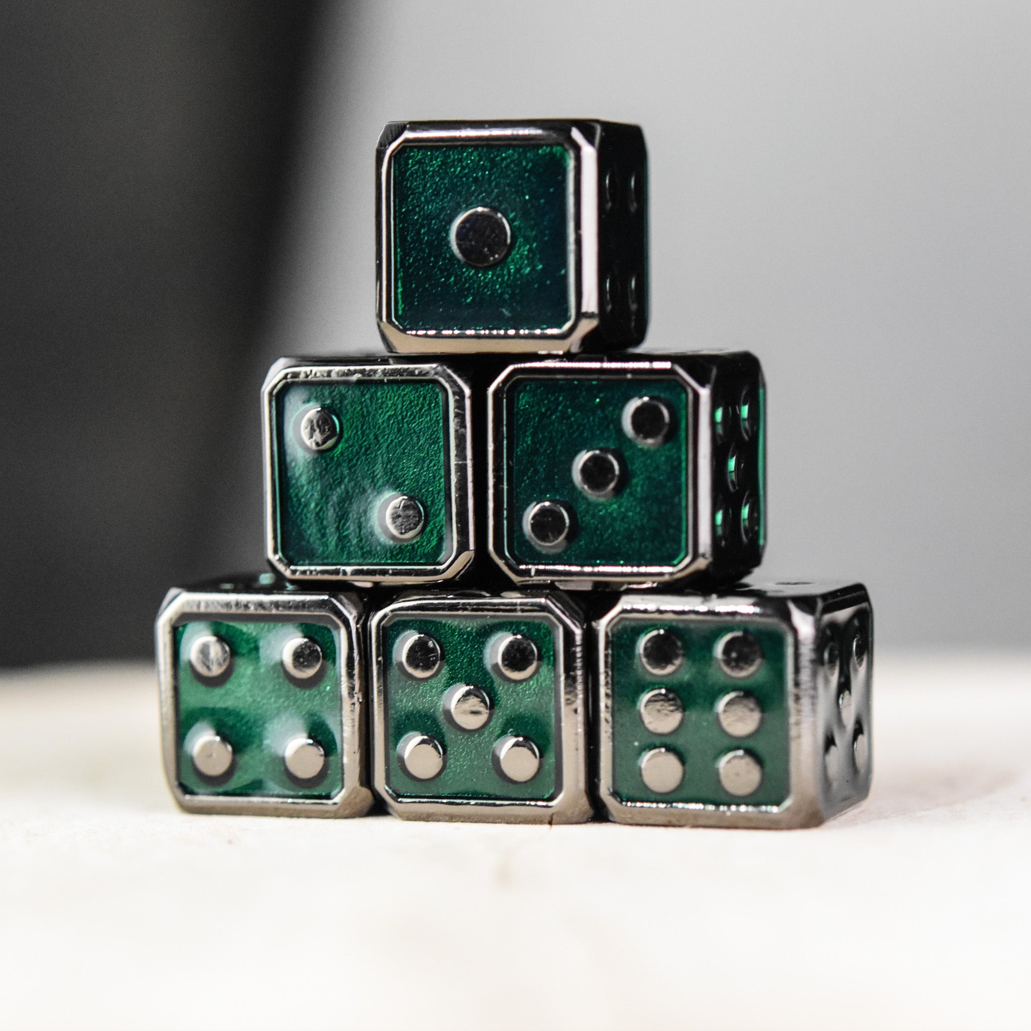 D6 6pc. Metal Dice Set - Green and Black