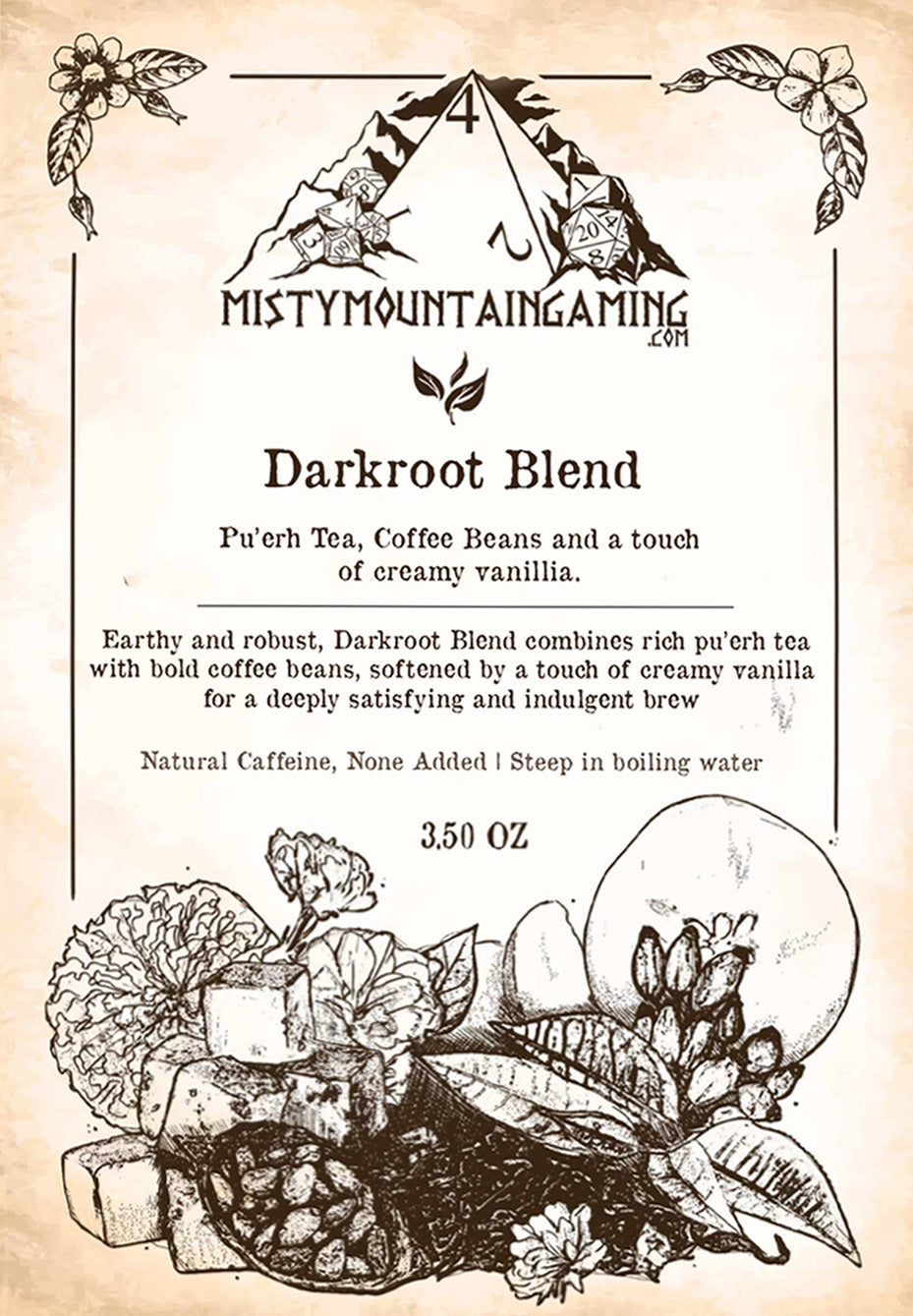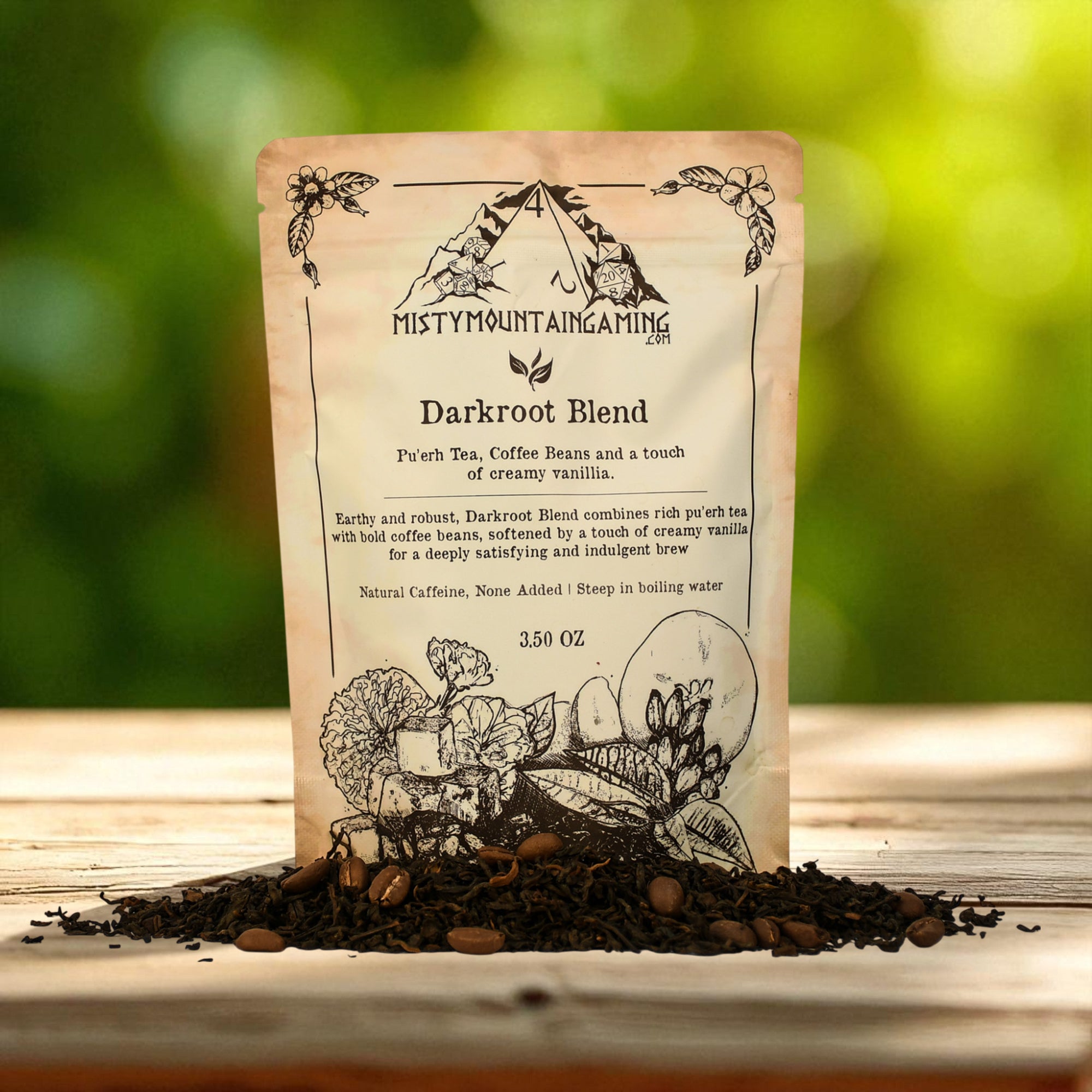 Earthy and robust, Darkroot Blend combines rich pu'erh tea with bold coffee beans, softened by a touch of creamy vanilla for a deeply satisfying and indulgent brew.