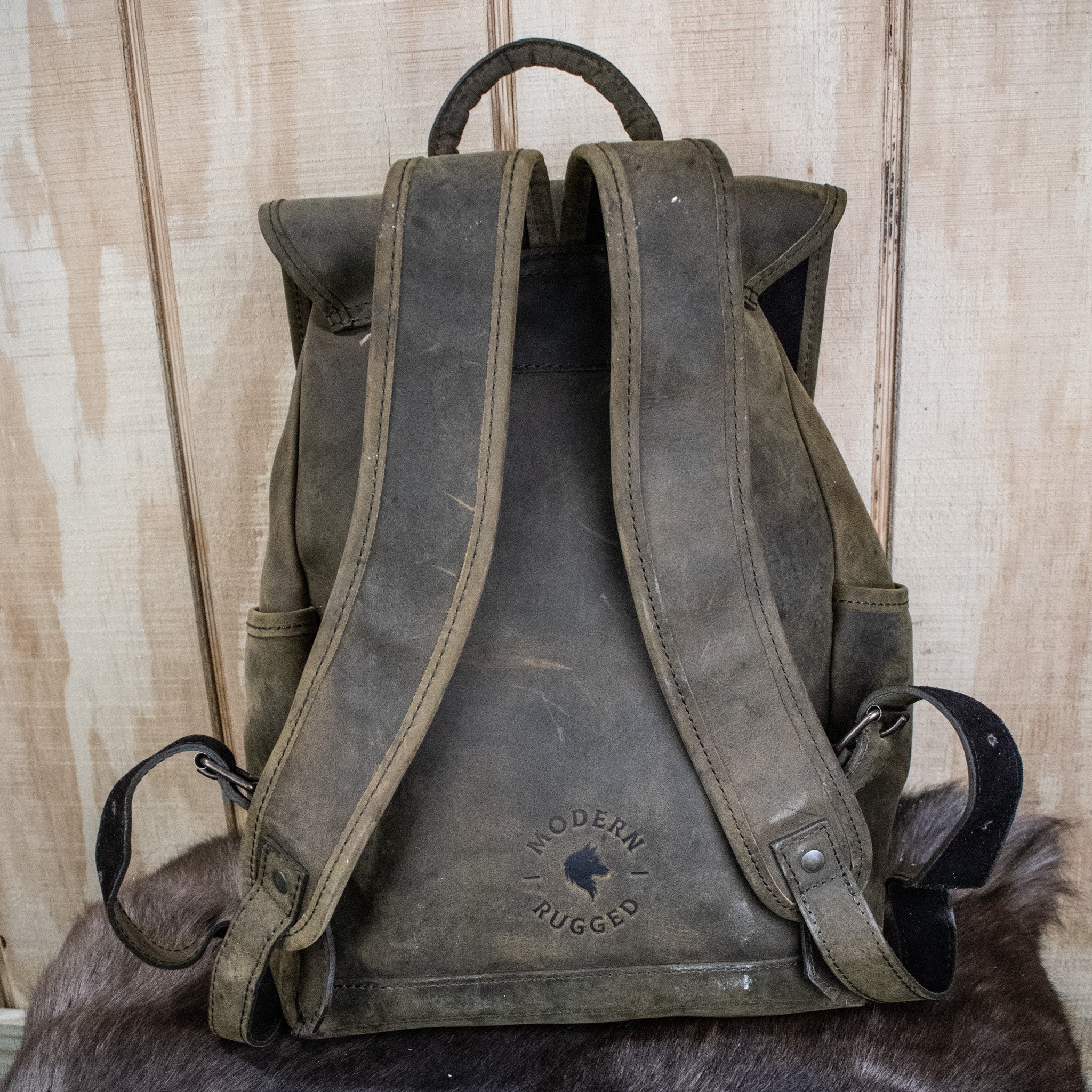 Leather Hide Backpack - Olive (Weathered)